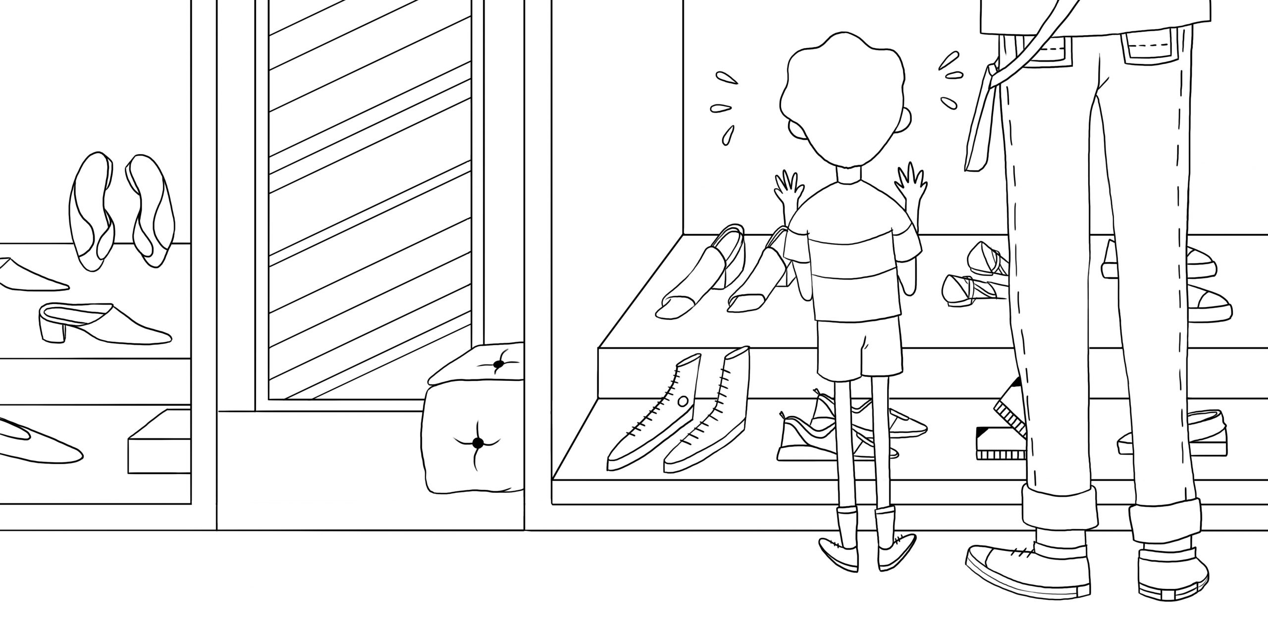 Ilustraciones para El niño de los zapatos rojos, una historia escrita por Tirso Priscilo Vallecillos García y publicada por A Fortiori Editorial